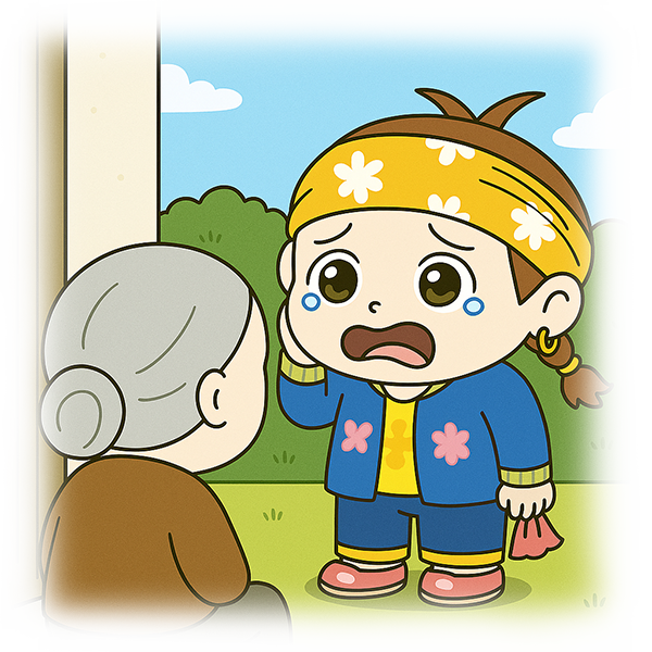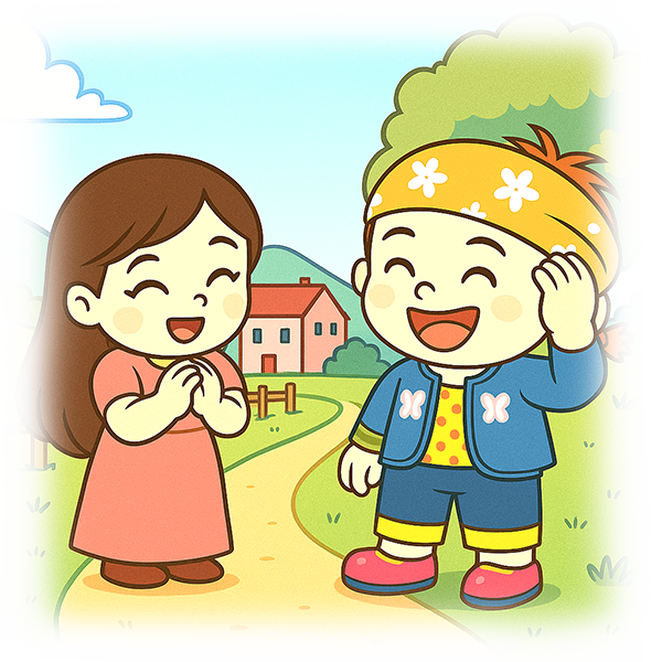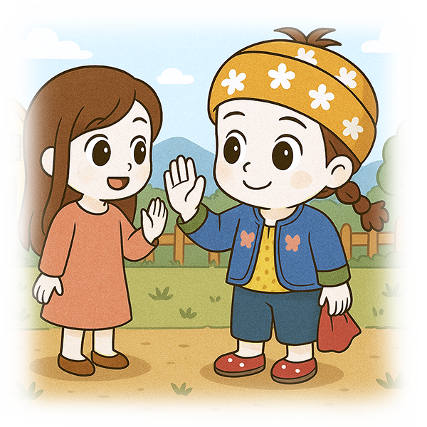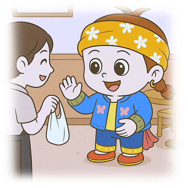 阿義和阿姐兩人寒暄幾句,阿義忽然想起家人還在家裡等他,便趕緊說:「我先回去啦!___!」