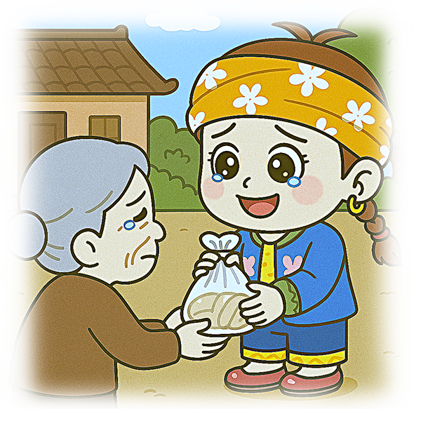 假期總是特別短暫,阿義離開前,阿婆依依不捨地交給阿義一袋禮物,叮囑著帶回去跟朋友分享家鄉味。阿義看到禮物是___,不禁心裡泛起一絲感動。